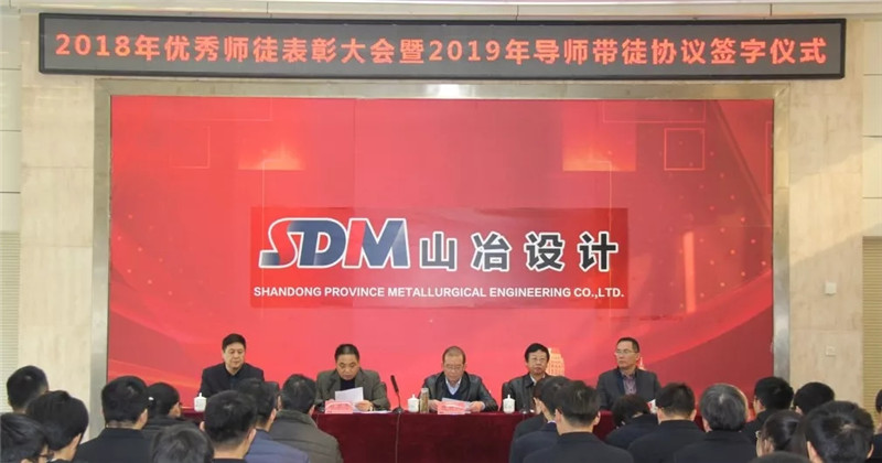 126日上午,山冶設計2018年度優秀師徒表彰大會暨2019年導師帶徒協議簽字儀式在濟南高新區辦公樓舉行。公司董事長魏新民、總經理衣忠德、黨委書記谷卓奇,副總經理孫彤、劉洪亮及2018年優秀師徒代表、2019年新結對師徒代表參加了本次大會。