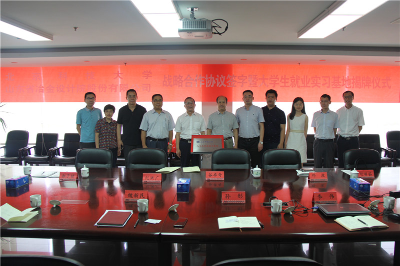 2019年7月23日,山冶設(shè)計(jì)與北京科技大學(xué)戰(zhàn)略合作框架協(xié)議簽字儀式暨北京科技大學(xué)大學(xué)生就業(yè)實(shí)習(xí)基地揭牌儀式在濟(jì)南舉行。北京科技大學(xué)土木與資源工程學(xué)院黨委書記紀(jì)洪廣,黨委副書記鄧波一行4人,公司董事長(zhǎng)魏新民,黨委書記谷卓奇,副總經(jīng)理孫彤及相關(guān)科室人員出席了簽字儀式。