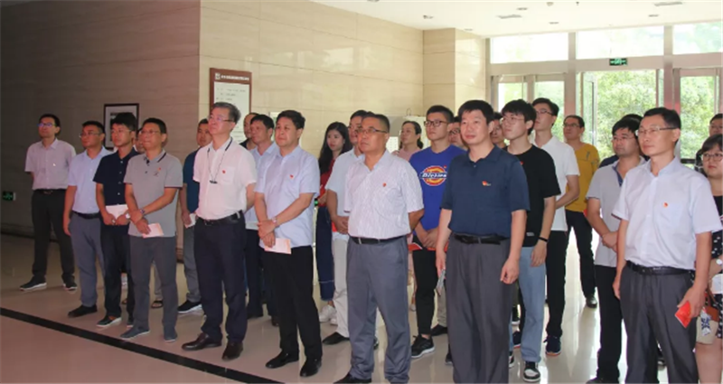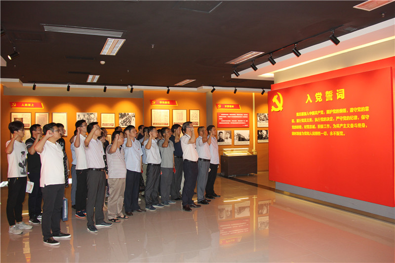 在鮮紅的黨旗前,黨委書記谷卓奇、黨委副書記劉洪亮、副總經理李銳帶領大家重溫了入黨誓詞。
