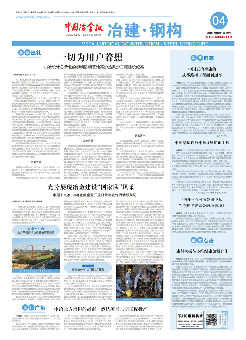一切為用戶著想——山冶設計總承包的柳鋼防城港基地高爐熱風爐工程建設紀實
